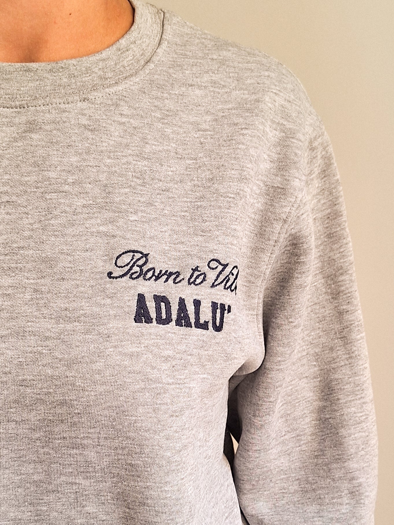 Il blu profondo evoca calma e forza, mentre il ricamo “Born to Vibe” tono su tono aggiunge un tocco sartoriale e discreto.