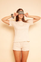 Realizzata in cotone morbido e delicato sulla pelle, è pensata per avvolgere lo sguardo con leggerezza e regalarti un riposo profondo e naturale.