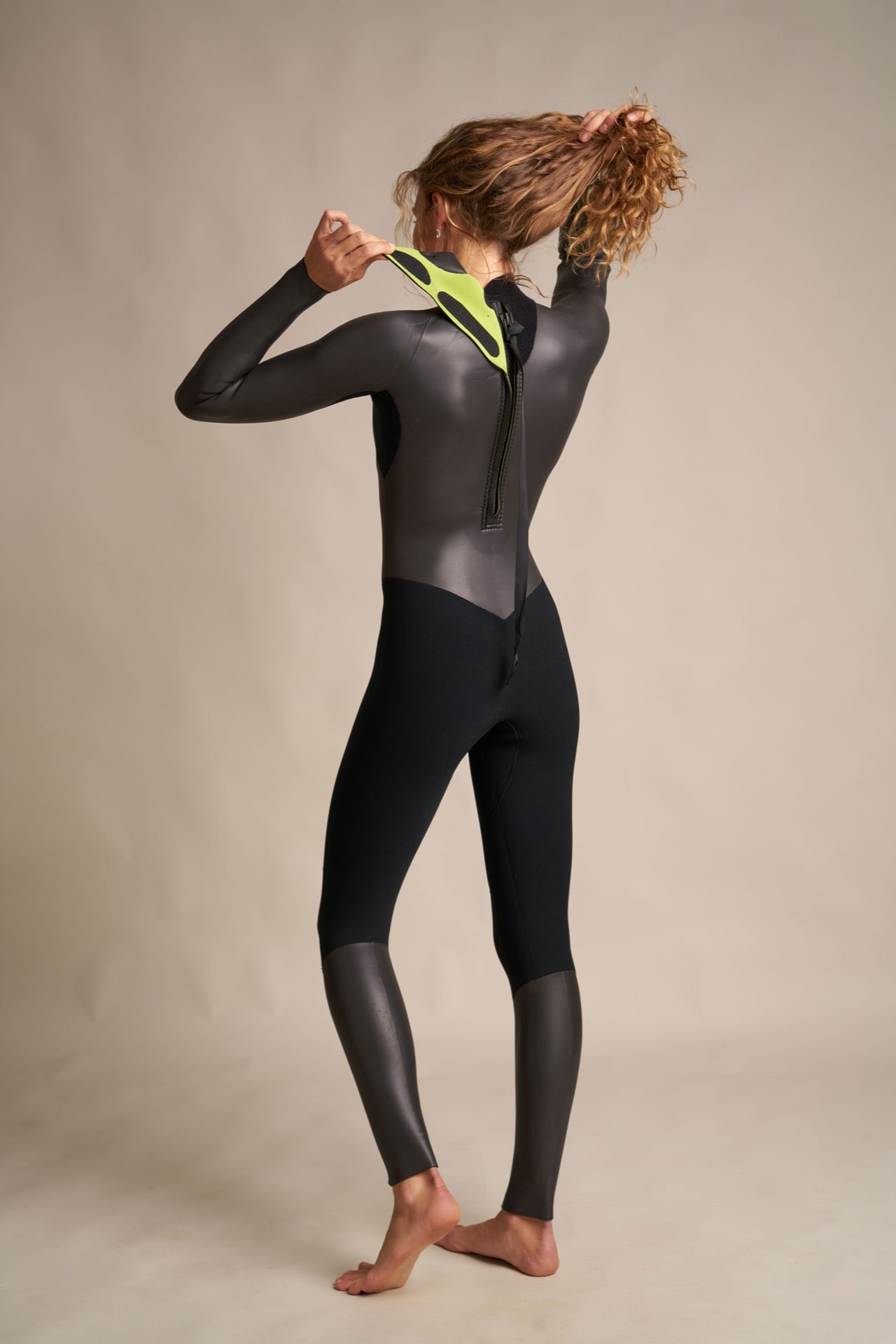 La back zip posteriore è doppiata da uno strato di neoprene, che isola la zip dalla pelle.